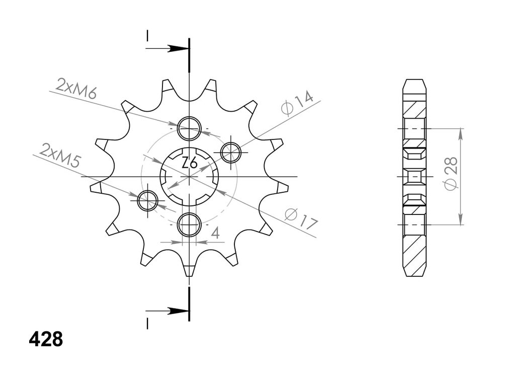 Every sprocket has weight reduction, with radial holes or radial slots (Forged models only) .