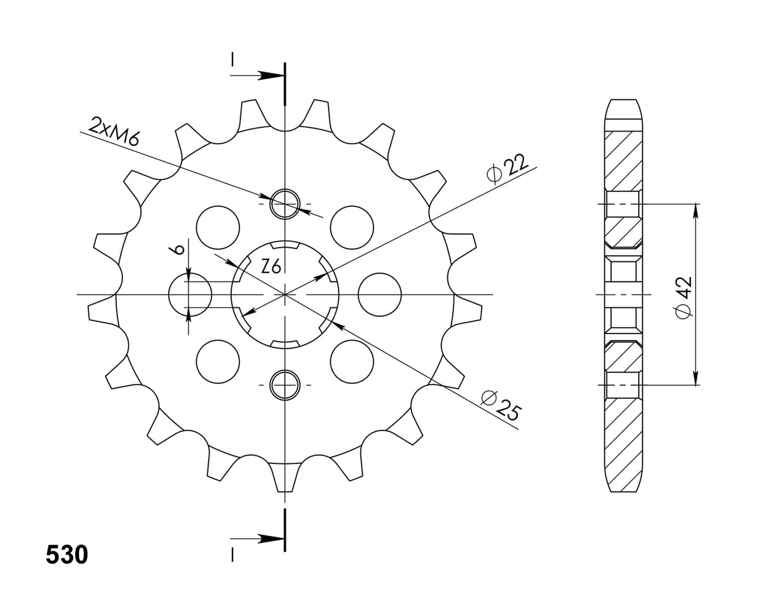 Every sprocket has weight reduction, with radial holes or radial slots (Forged models only) .