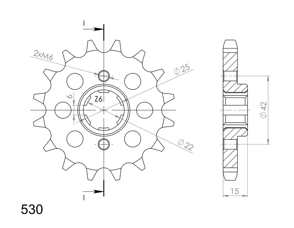 Every sprocket has weight reduction, with radial holes or radial slots (Forged models only) .