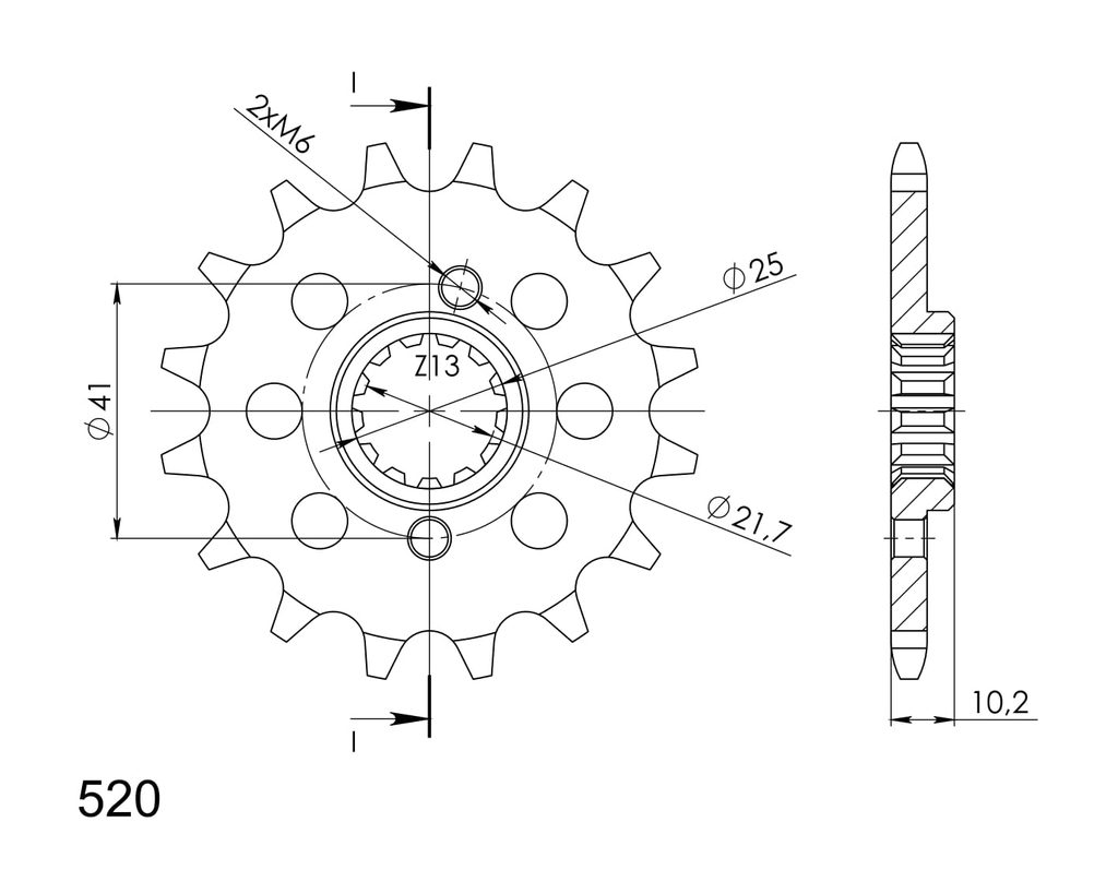 Every sprocket has weight reduction, with radial holes or radial slots (Forged models only) .
