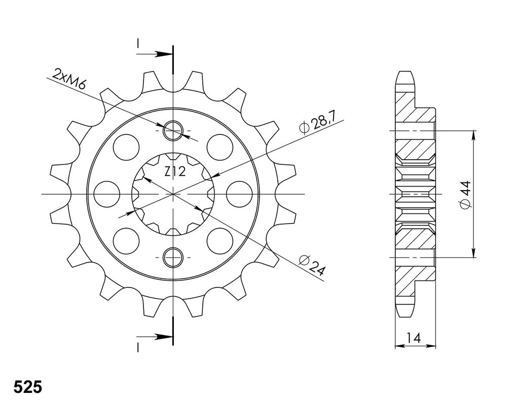 Every sprocket has weight reduction, with radial holes or radial slots (Forged models only) .