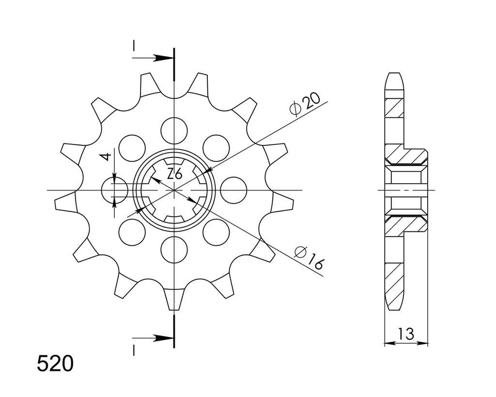 Every sprocket has weight reduction, with radial holes or radial slots (Forged models only) .