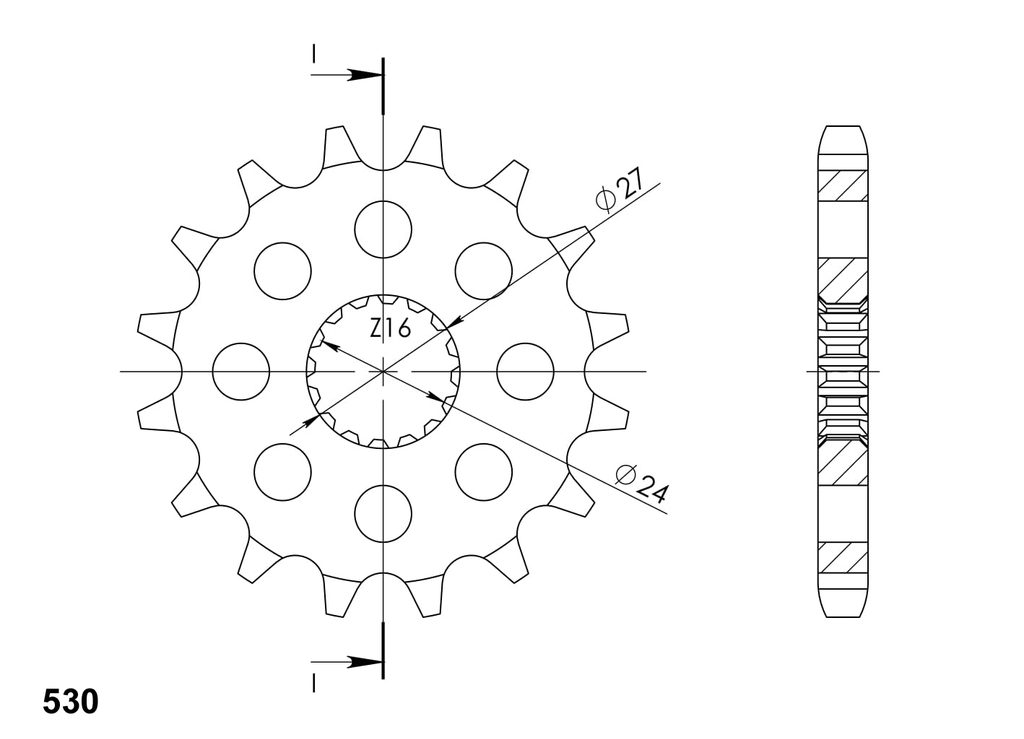 Every sprocket has weight reduction, with radial holes or radial slots (Forged models only) .