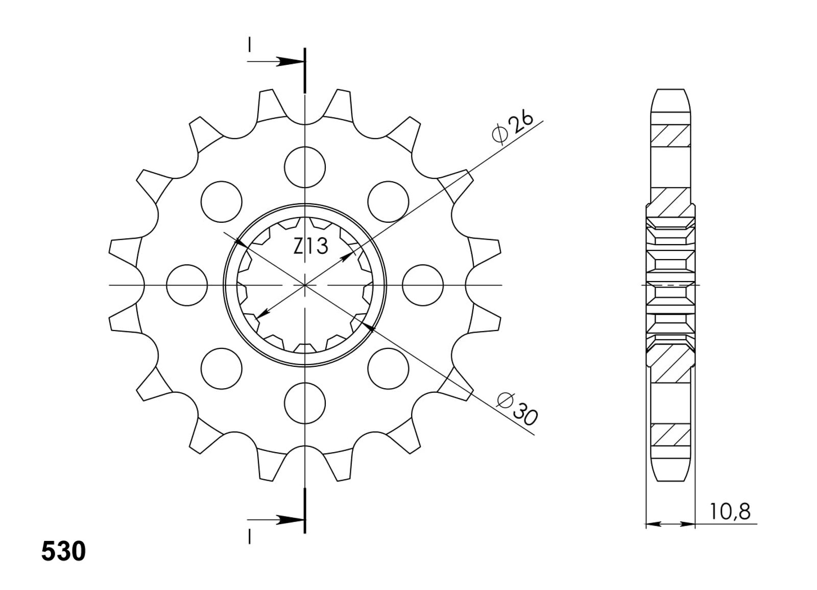 Every sprocket has weight reduction, with radial holes or radial slots (Forged models only) .