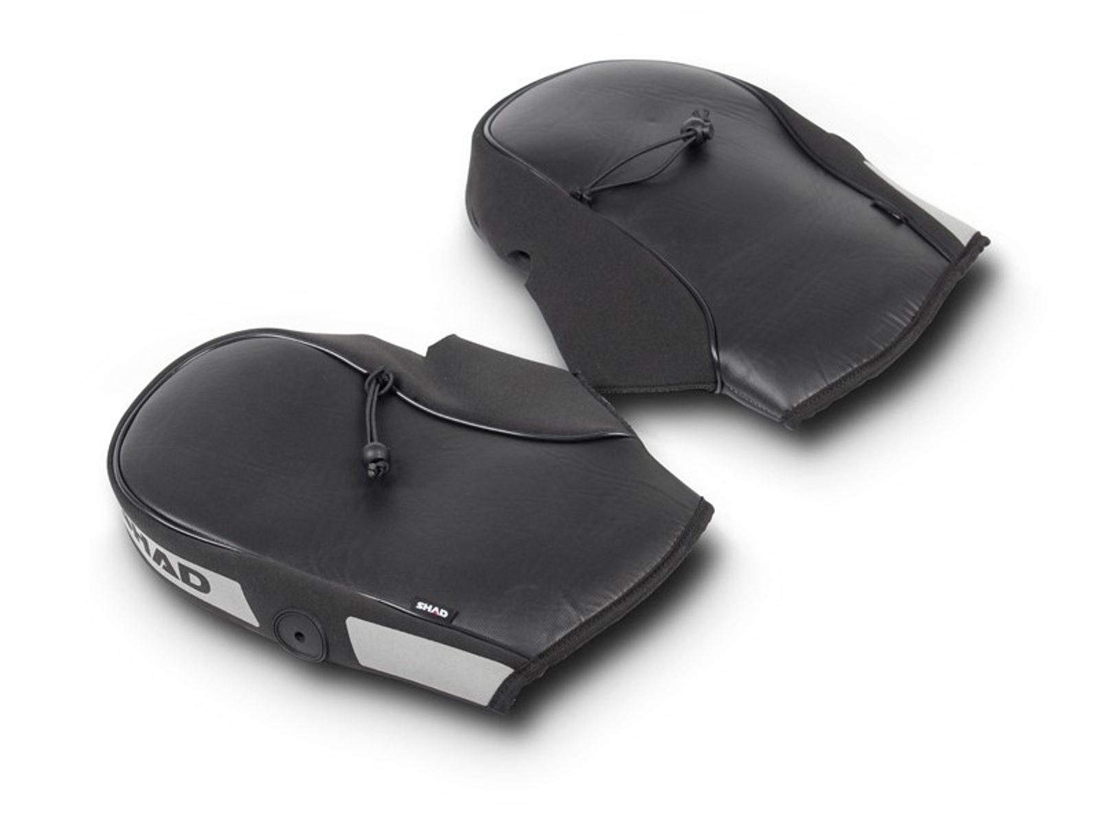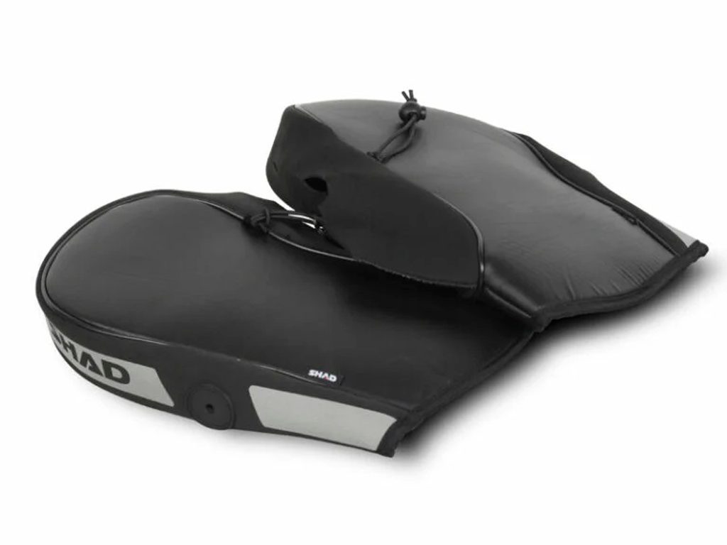 Water resistant hand muffs made in synthetic leather and neoprene, with reflective elements for greater safety. The inside with thermal lining allows a better retain of heat, keeping your hands warm.