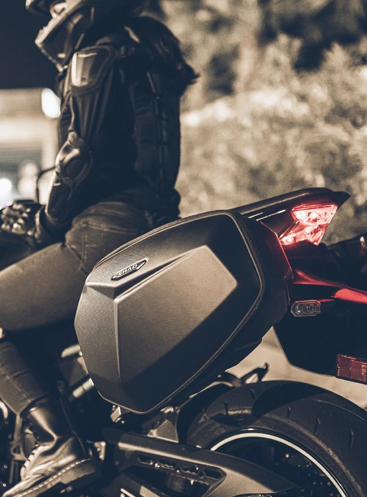 Saddlebags E48SR with lock system with keys to the SR fitting which allows to lock by combination the main compartment. The fitting system Side Bag Holder SR offers a perfect aesthetics integration to the motorcycle and ensures a strong and light fitting made from polyamide and glass fibre.