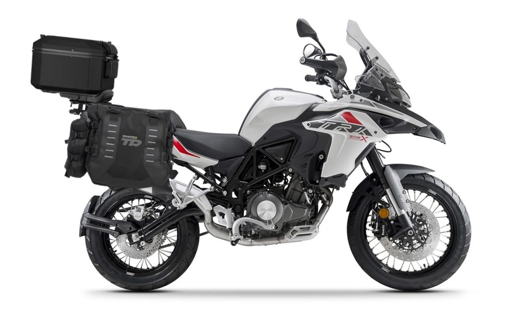 Set of SHAD TERRA TR40 adventure saddlebags and SHAD TERRA aluminium top case TR55 PURE BLACK, including mounting kit SHAD BENELLI TRK 502X