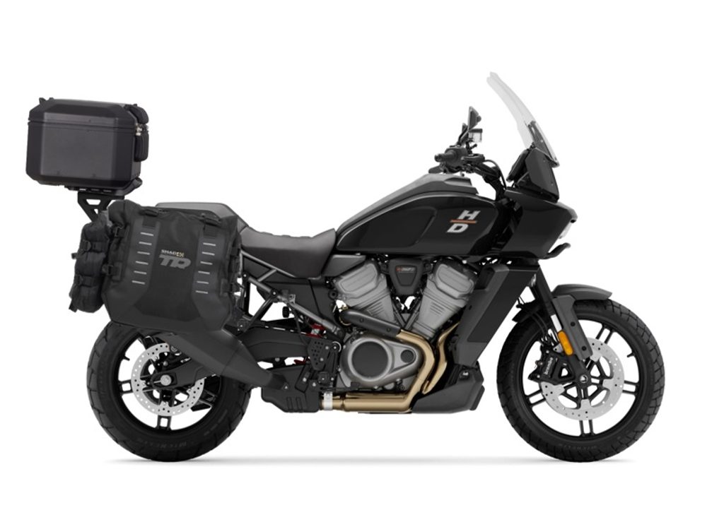 Set of SHAD TERRA TR40 adventure saddlebags and SHAD TERRA aluminium top case TR55 PURE BLACK, including mounting kit SHAD HARLEY 1250 PAN AMERICA