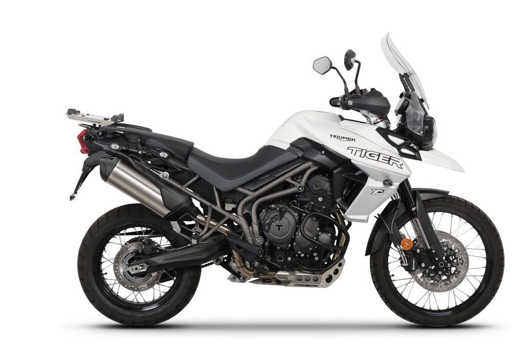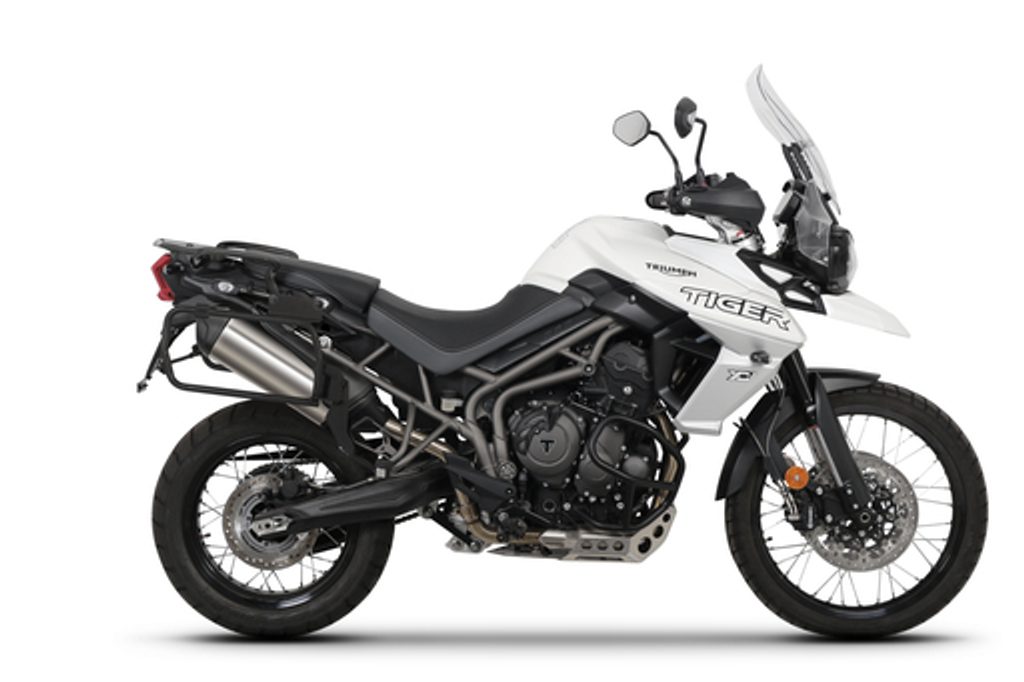 Set of SHAD TERRA TR40 adventure saddlebags and SHAD TERRA aluminium top case TR55 PURE BLACK, including mounting kit SHAD TRIUMPH TIGER 800