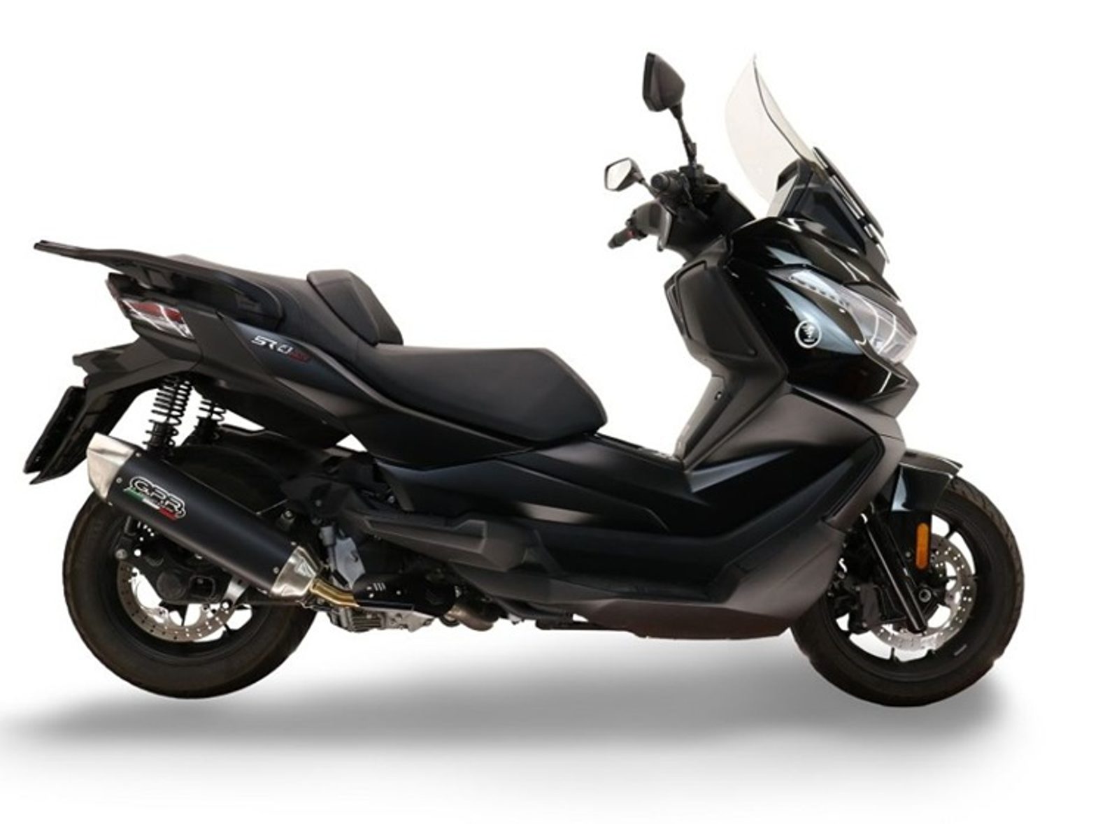 GPR's FURORE-X scooter silencer has a black aluminum body, with INOX 304 caps made through CNC machining. It has a ceramic finish that withstands high temperatures, with an elliptical shape that measures 90mm x120mm.