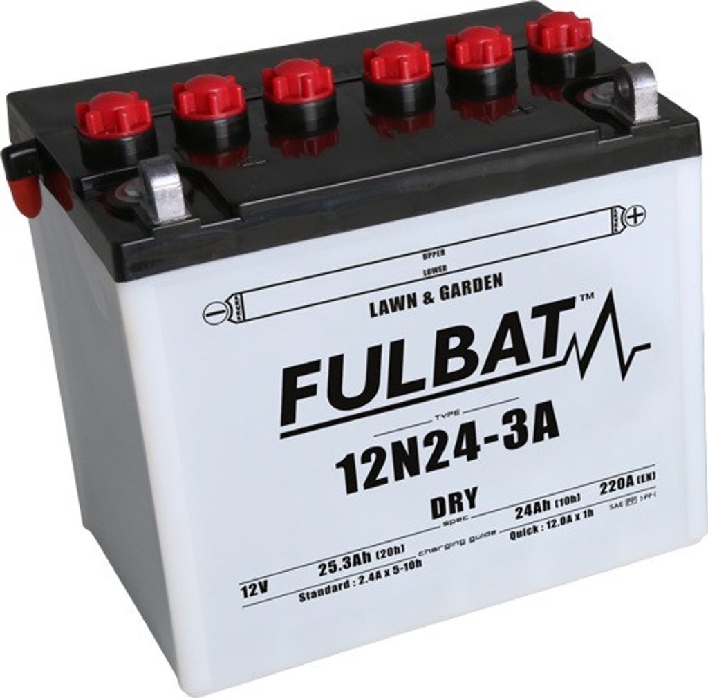 12N24-3A is part of our DRY range. Specially designed to offer good performance and vibration resistance, this 12V 25.3Ah battery is delivered with an acid pack, must be activated before first use and must be checked periodically.