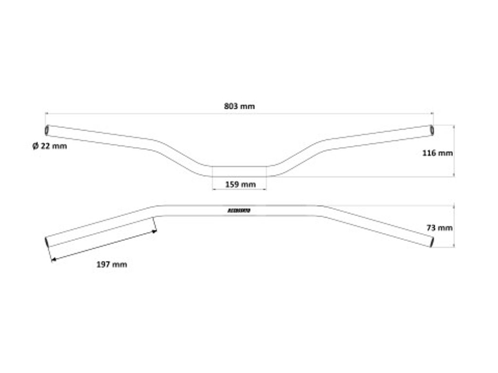 Technical Specifics: Diameter: 22 mm - Lenght:803 mm - Height:116 mm - Central Part Length:159 mm - Inclination:73 mm -Raw Material: Aluminium.