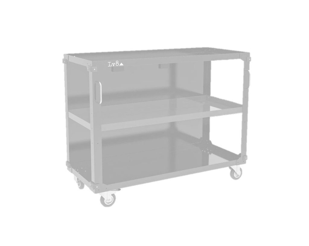 L. 1200 mm under table trolley with 3 shelves It can be integrated under our workbenches and it is reversible: the back panel hides the material inside.